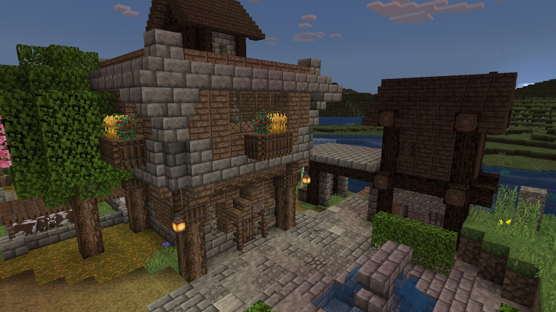 • First Floor (36m²): A windowless, private floor designed for high-volume storage and crafting. Features: 10 double chests with organisational signage, Smithing Table, Stonecutter, Cartography Table, Fletching Table, and a Juliet Balcony overlooking Ashgate Fold and Underrest Lodge.